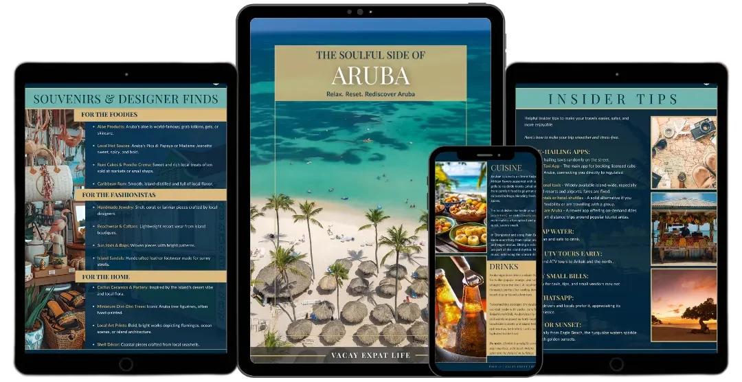 Breathe in the warm island breeze and embrace the art of slow living with The Soulful Side of Aruba, a 44-page luxury travel eBook created by Vacay Expat Life. Designed for travelers who crave serenity, sophistication, and meaningful connection, this beautifully curated digital travel guide reveals Aruba’s sun-kissed charm, cultural richness, and tranquil escapes.