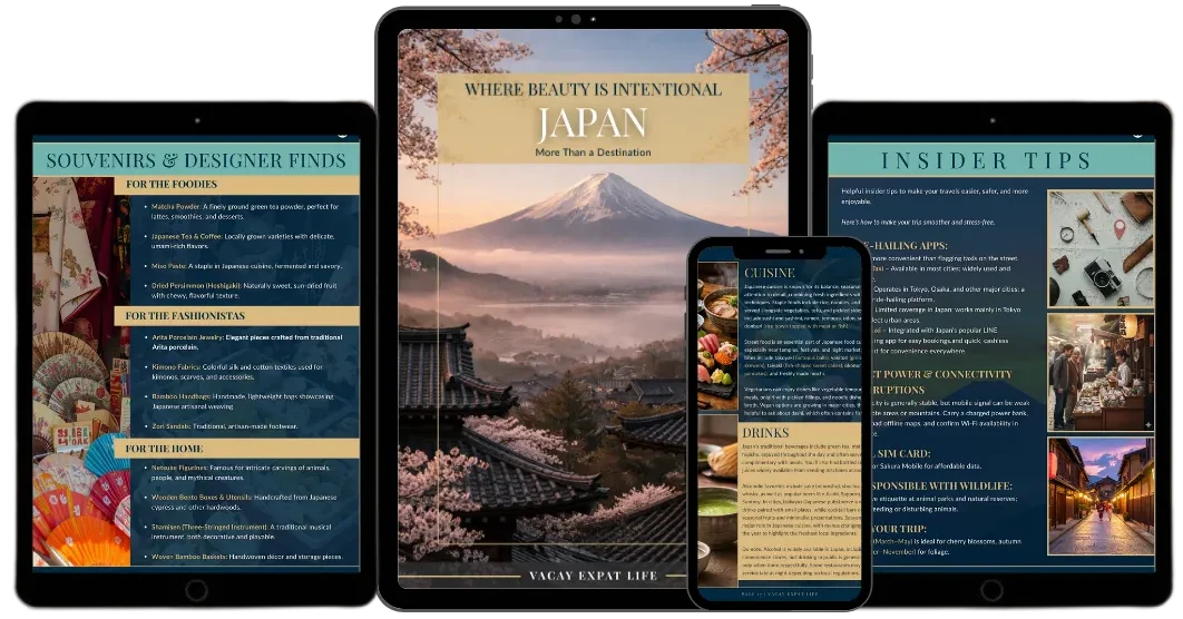 From tranquil temples and seasonal cuisine to mindful rituals and understated luxury, this comprehensive eBook helps you craft a seamless and meaningful escape. Whether you’re drawn to restorative stillness or cultural discovery, Vacay Expat Life brings Japan to life through expert insight and timeless sophistication.