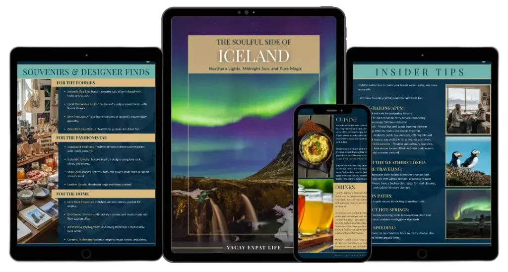 Embark on an extraordinary adventure with The Soulful Side of Iceland, a 44-page luxury travel eBook by Vacay Expat Life. Designed for travelers who seek both awe and tranquility, this digital guide unveils Iceland’s raw beauty, from thundering waterfalls and volcanic landscapes to soothing hot springs and serene fjords.