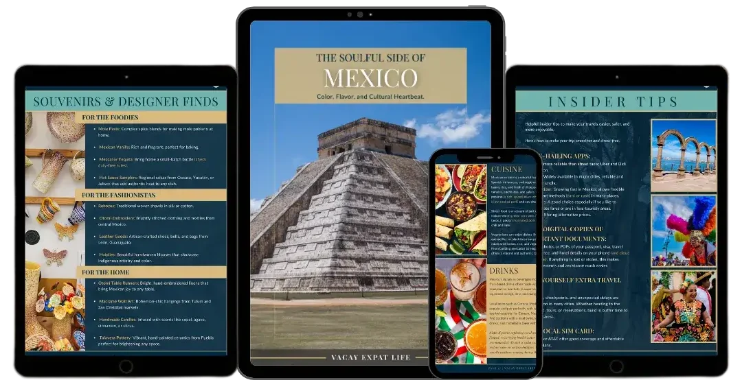 Experience the magic of Mexico with The Soulful Side of Mexico, a 44-page luxury travel eBook by Vacay Expat Life. Crafted for travelers who seek authenticity, warmth, and wonder, this digital guide captures the essence of a country where every color tells a story and every moment feels alive.