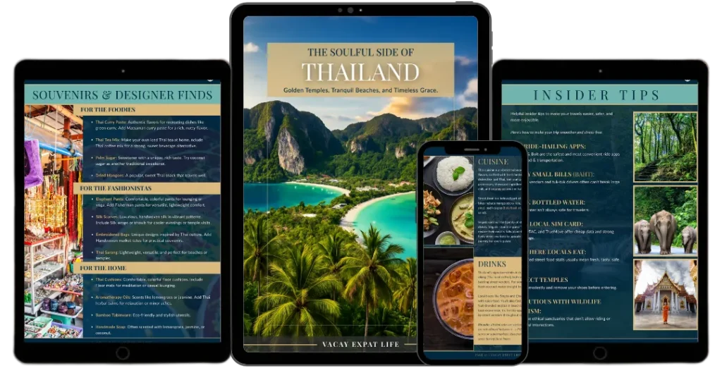 Immerse yourself in the warmth and wonder of The Soulful Side of Thailand, a 44-page luxury travel eBook by Vacay Expat Life. Created for travelers who seek harmony, adventure, and cultural depth, this digital guide reveals Thailand’s serene landscapes, refined hospitality, and vibrant spirit.