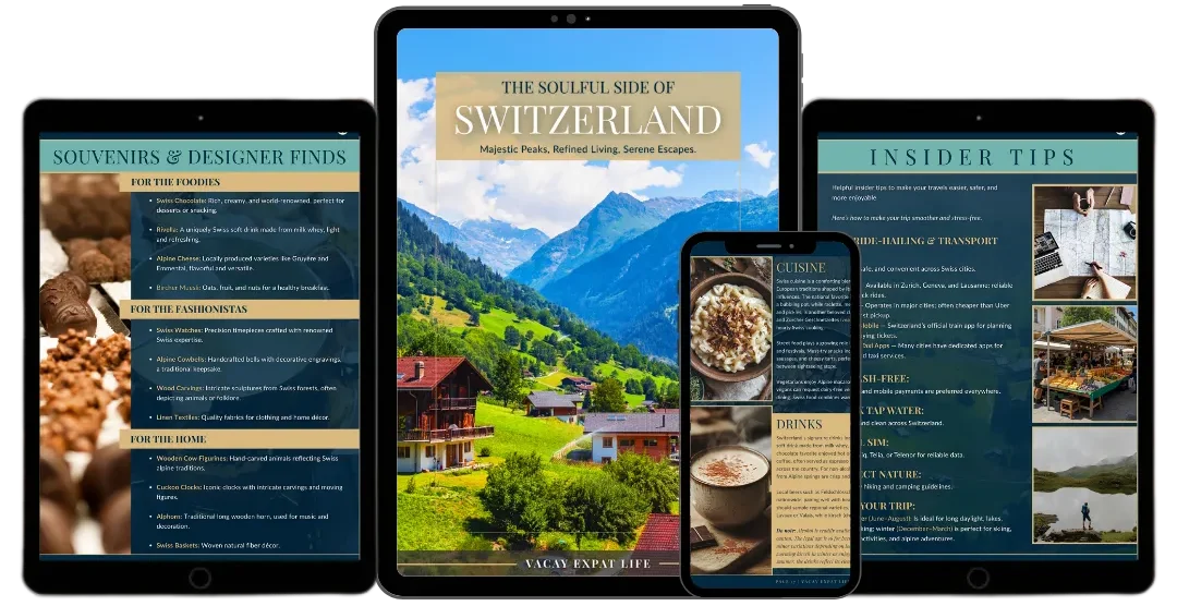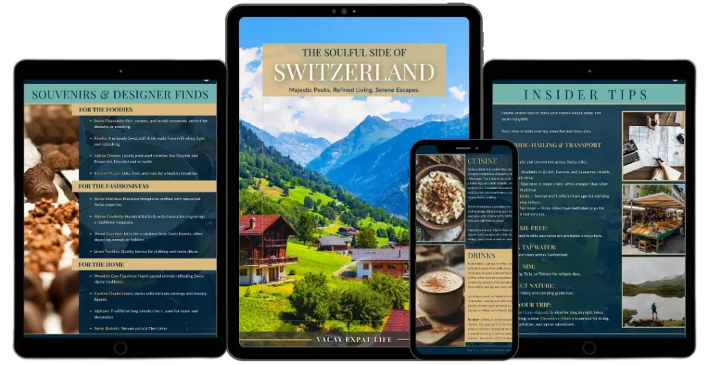 Discover a land where natural grandeur meets timeless elegance with The Soulful Side of Switzerland, a 44-page luxury travel eBook by Vacay Expat Life. Designed for travelers who appreciate beauty, precision, and peace, this digital guide unveils Switzerland’s alpine wonders, luxurious retreats, and effortless sophistication.